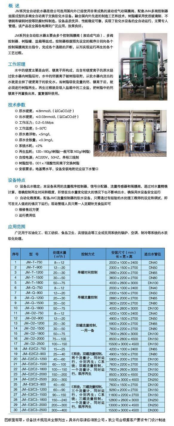 JM系列全自动软水器